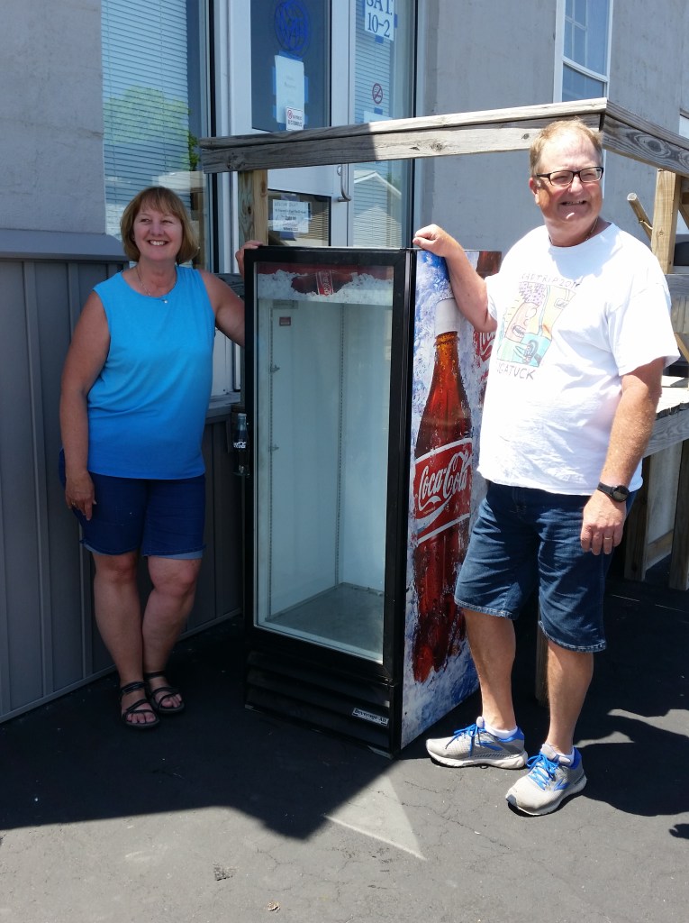 St. Joseph parishioners Dave and Karen Snuffer presented SVdP a Coca-Cola cabinet given to them by Karen’s sister and brother-in-law, Ellen and Jeff Paul from Oldenburg.